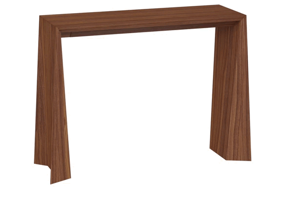 La consola Naruk está disponible en dos medidas, lo que permite una adaptación precisa a distintos tipos de estancia. Además, ofrece la posibilidad de incorporar dos bandejas giratorias ocultas bajo la tapa, un detalle funcional que mejora la experiencia de uso sin alterar la limpieza formal del diseño.
