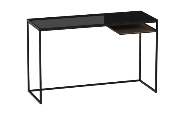 Rita combina una estructura metálica termolacada en negro microtexturado con una base personalizable en laca, roble o nogal, adaptándose a estilos que van desde la sobriedad elegante hasta propuestas más cálidas y expresivas. El diseño se completa con un sobre de cristal fumé gris, que aporta profundidad y sofisticación, convirtiendo el escritorio Rita en una pieza funcional y decorativa capaz de elevar cualquier espacio. Esta combinación de materiales nobles logra un diseño ligero y con personalidad, que se adapta fácilmente a cualquier espacio, ya sea en hogar o espacio contract.