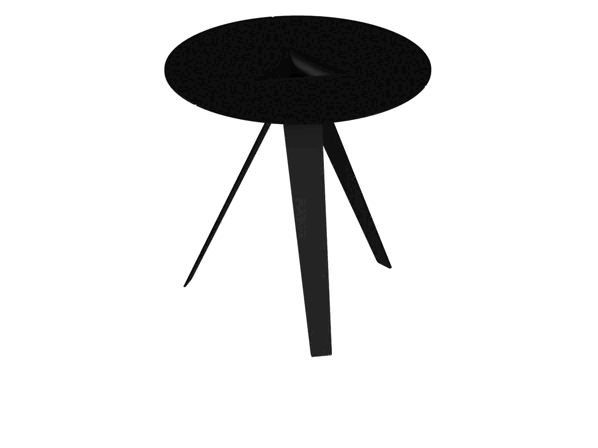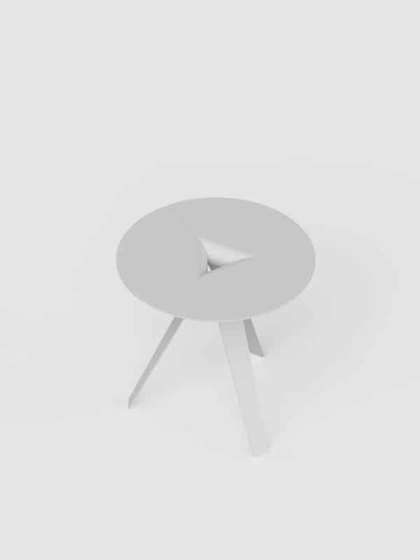 A pesar de su aparente sencillez, Tria es una mesa con un gran impacto visual. Su forma nace del encuentro entre tres planchas de metal que, al unirse, generan una cavidad interior y dibujan una silueta triangular tan elegante como funcional. Este juego geométrico le aporta carácter propio y la convierte en una pieza ideal para acompañar ambientes contemporáneos y proyectos con identidad.