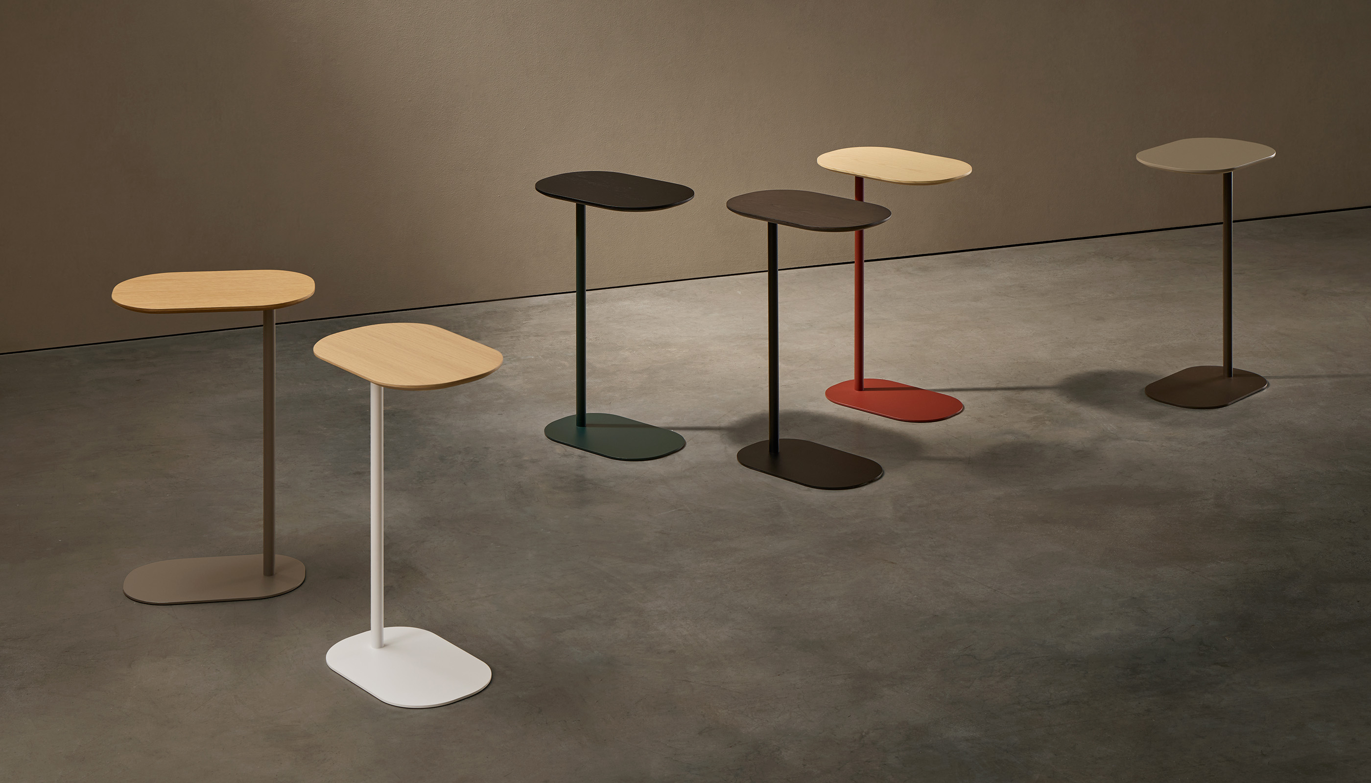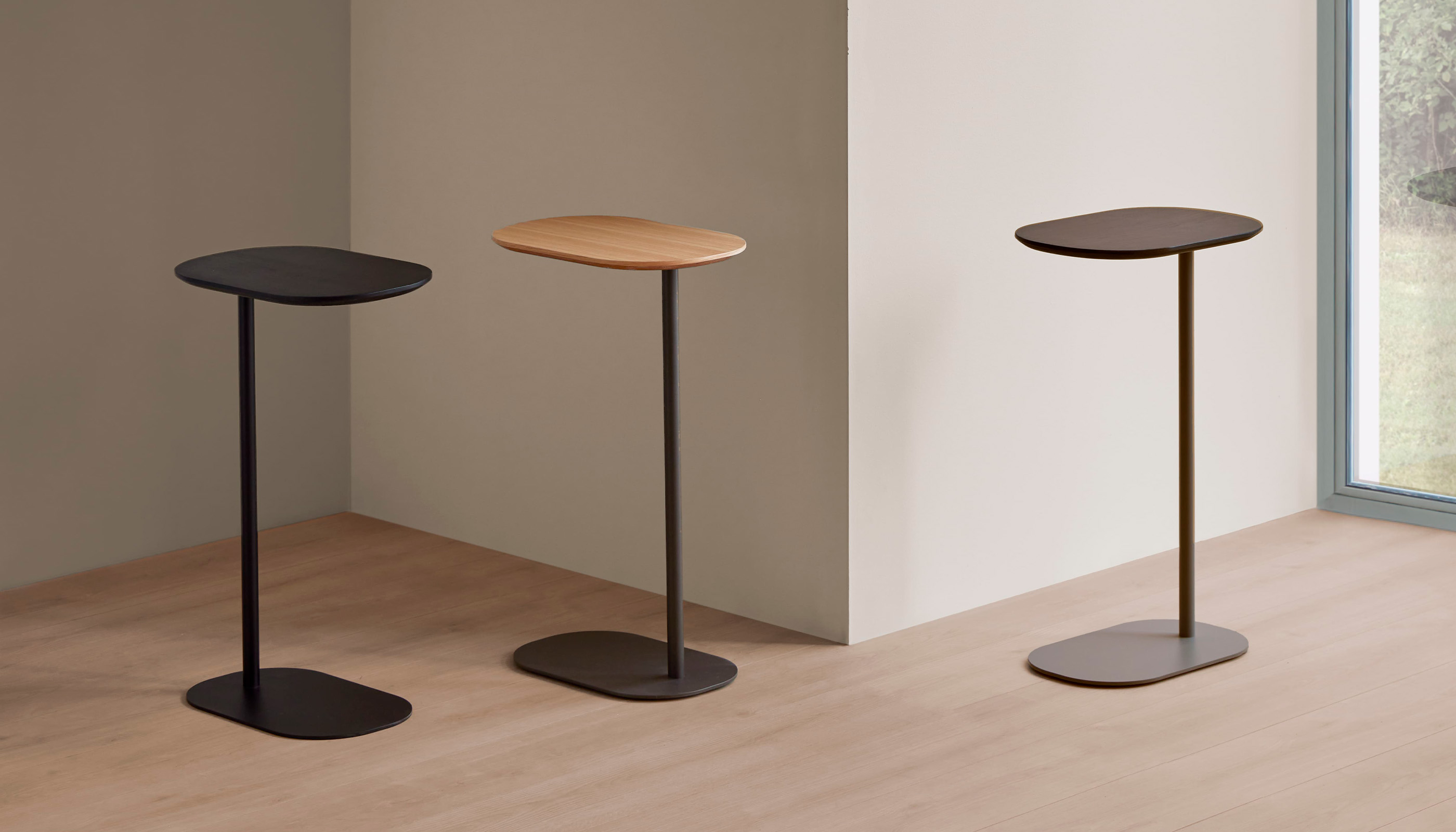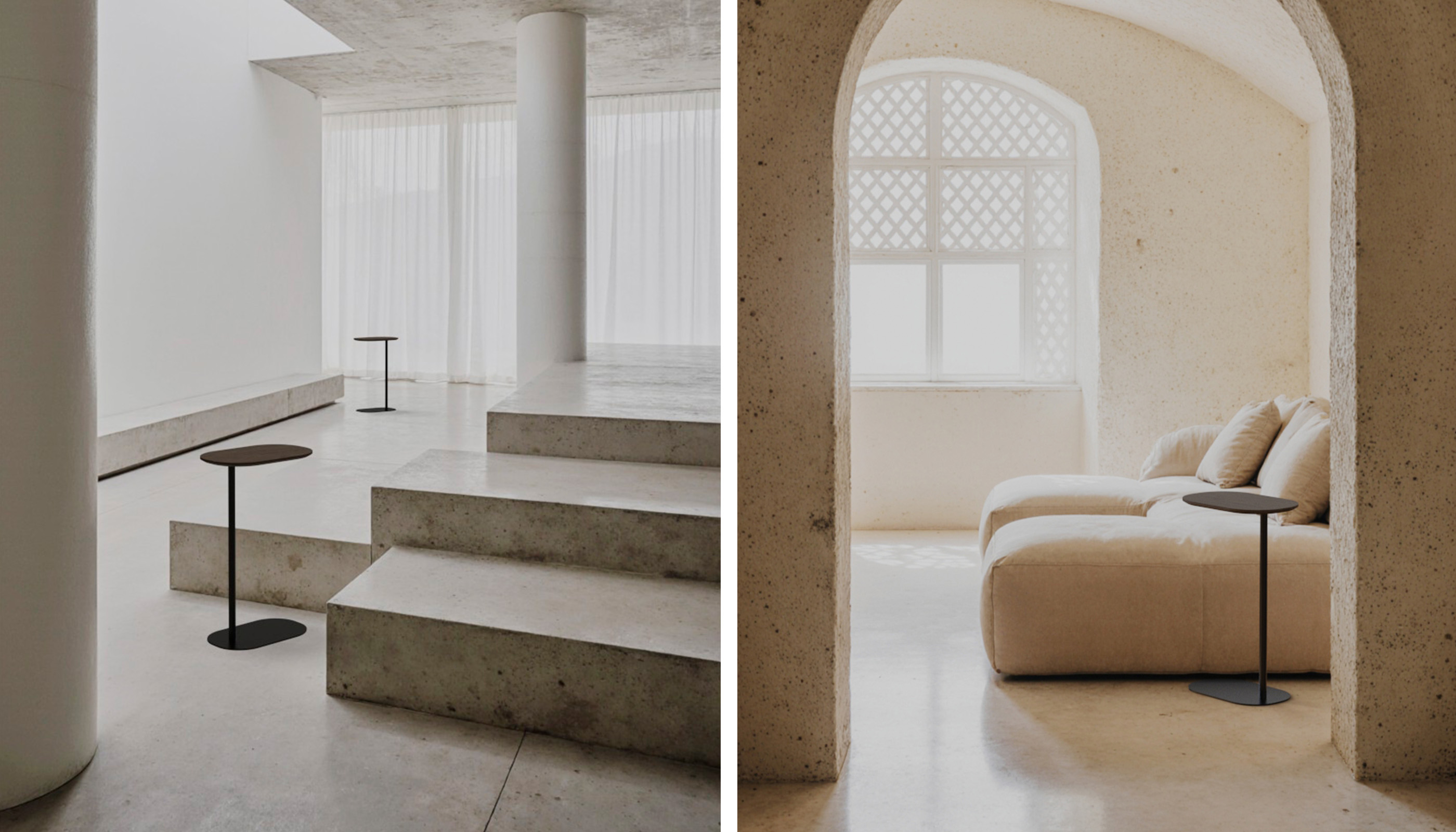 El diseño de la colección Une se articula alrededor de una fina columna que eleva el sobre, apoyada sobre una base amplia que garantiza estabilidad. Su peso ligero permite moverla con facilidad para acercarla a una butaca o sofá, ofreciendo una superficie práctica para apoyar objetos decorativos, un libro o incluso un ordenador portátil. Une funciona como un acompañante natural, adaptándose a las necesidades del día a día.