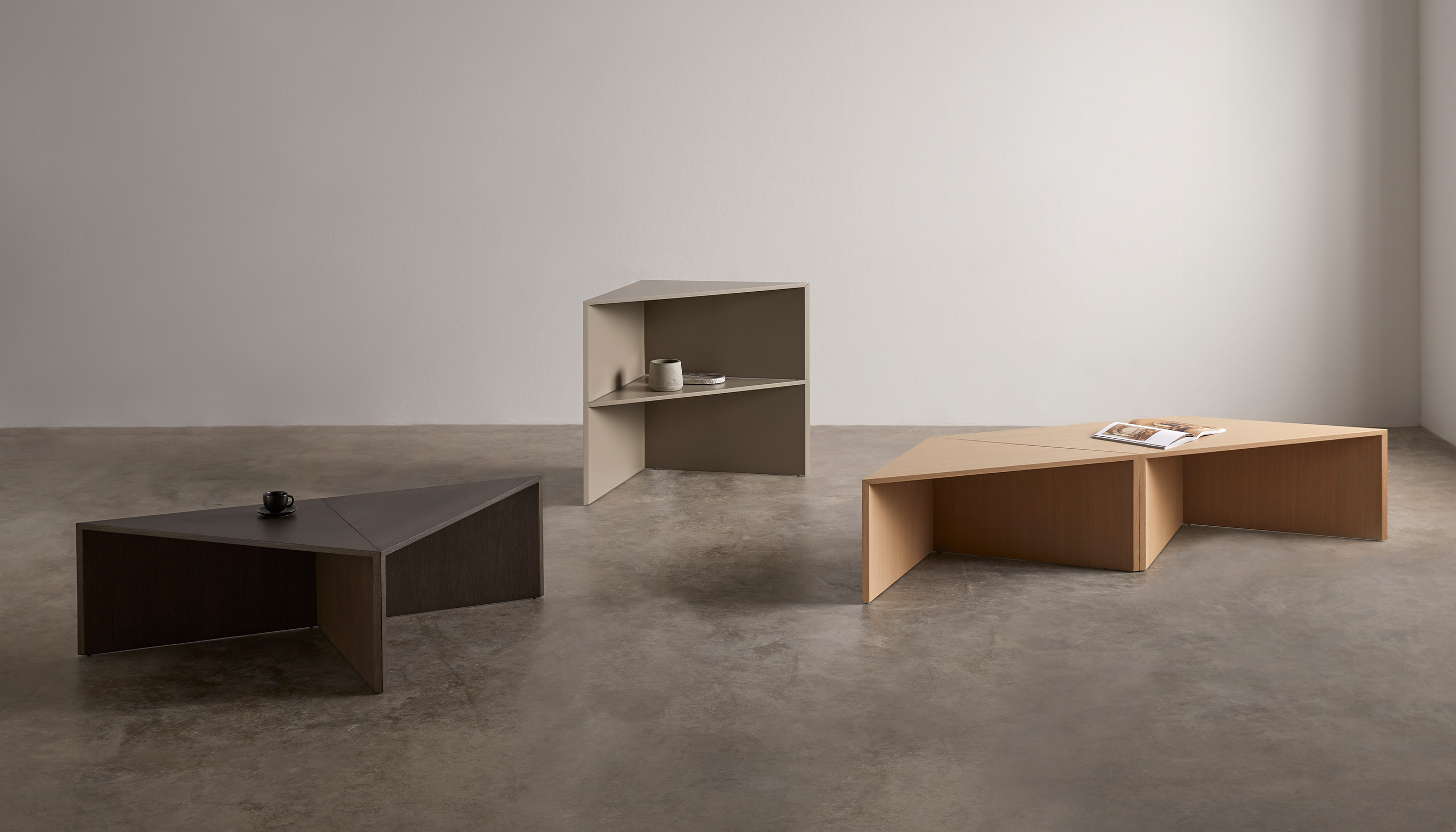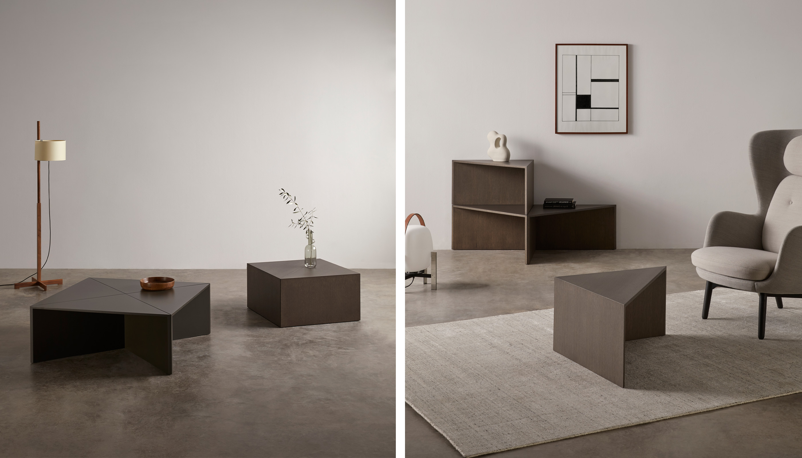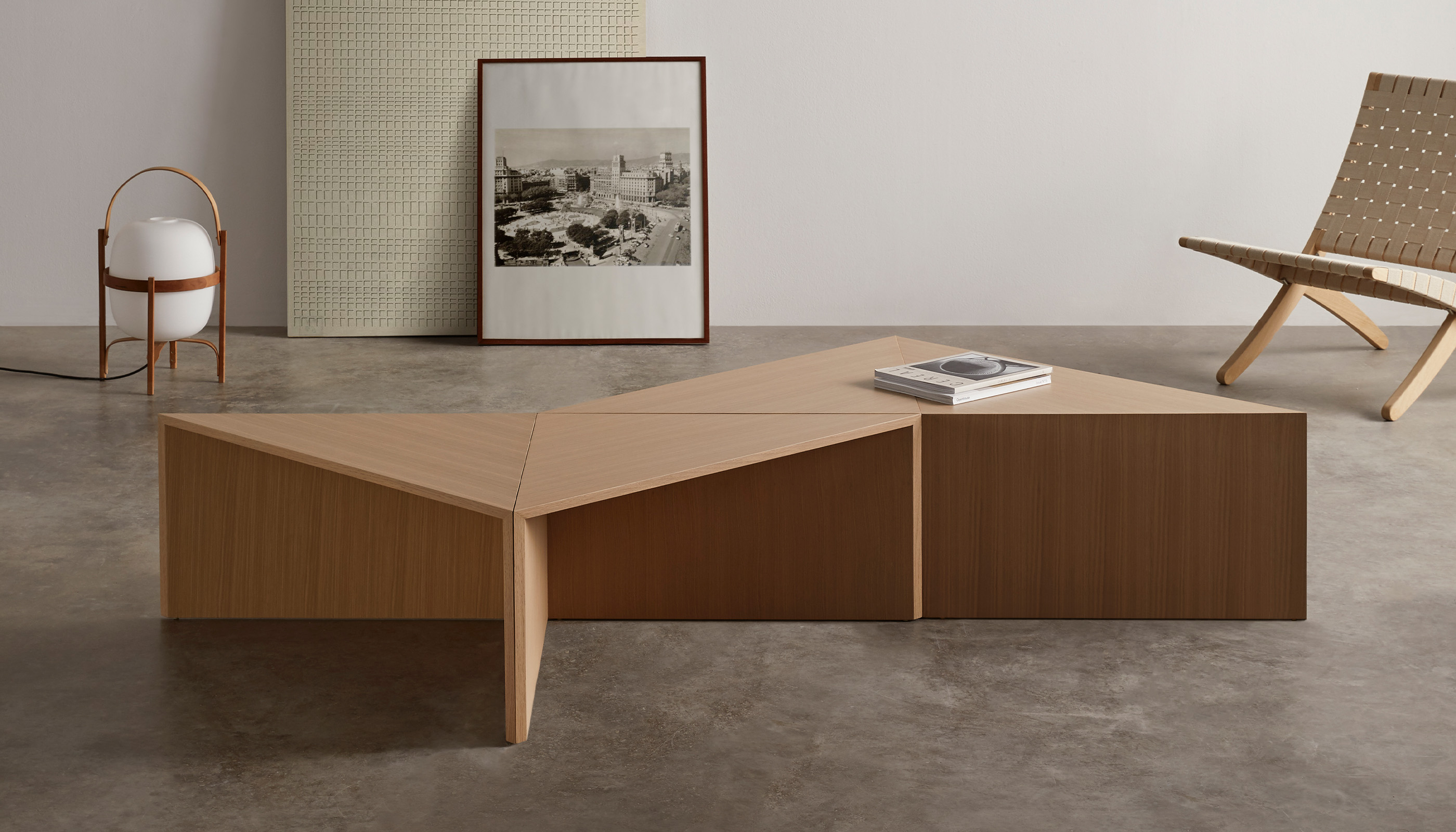 Esta mesa modulable, reedición del icónico diseñador de Miguel Milá, está compuesta por cuatro módulos triangulares que pueden funcionar tanto en conjunto como por separado, ofreciendo múltiples configuraciones para adaptarse a cualquier necesidad: mesa de centro, mesas auxiliares o complementos funcionales en distintos ambientes.