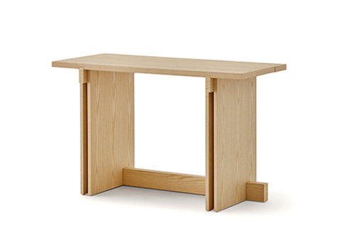 El cuidado en el diseño se manifesta también en los pequeños detalles. Los travesaños en la unión de la estructura con la tapa y en la parte inferior aportan solidez. El espacio entre los costados verticales crea un interesante juego visual en la intersección con el travesaño.