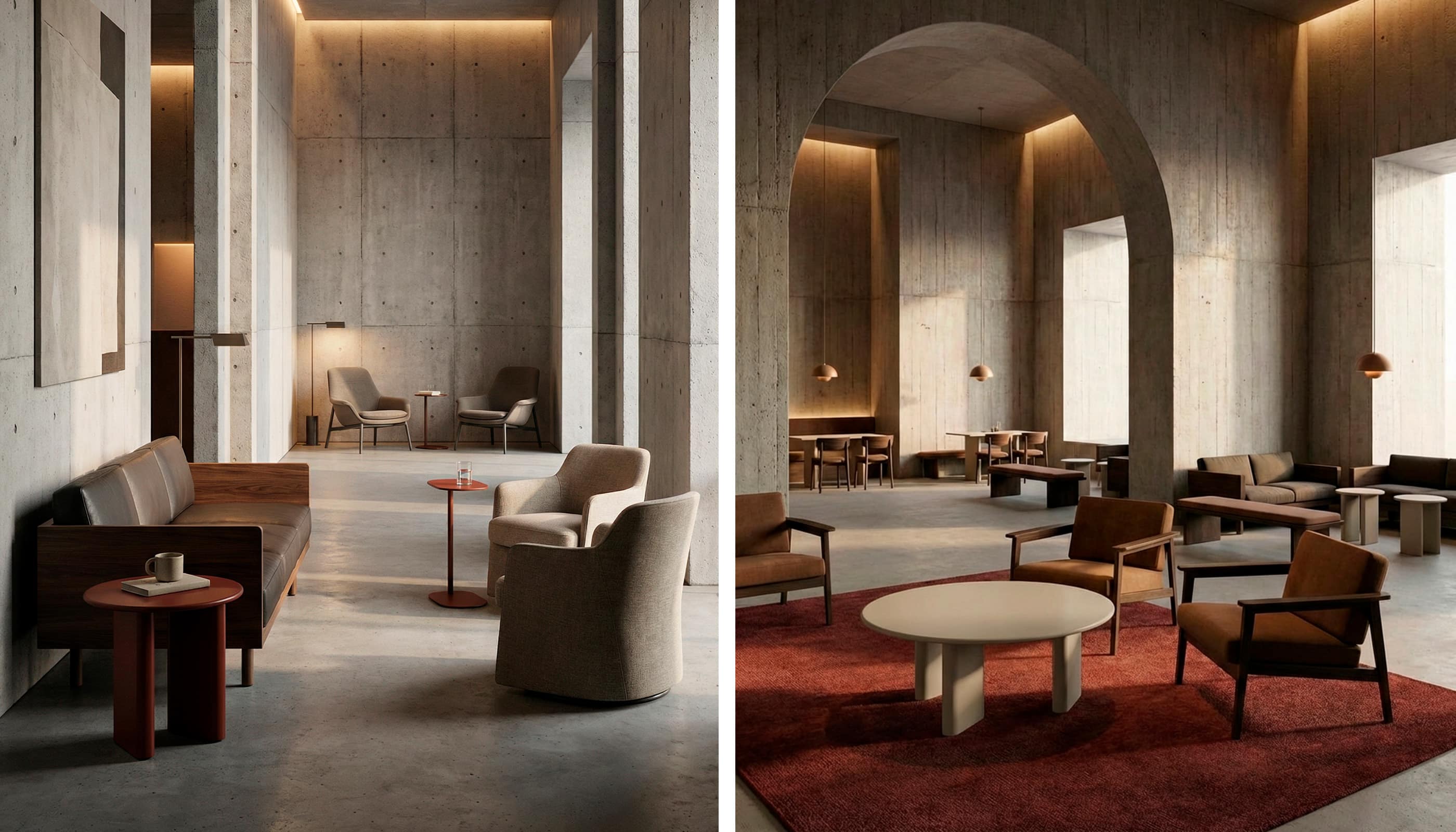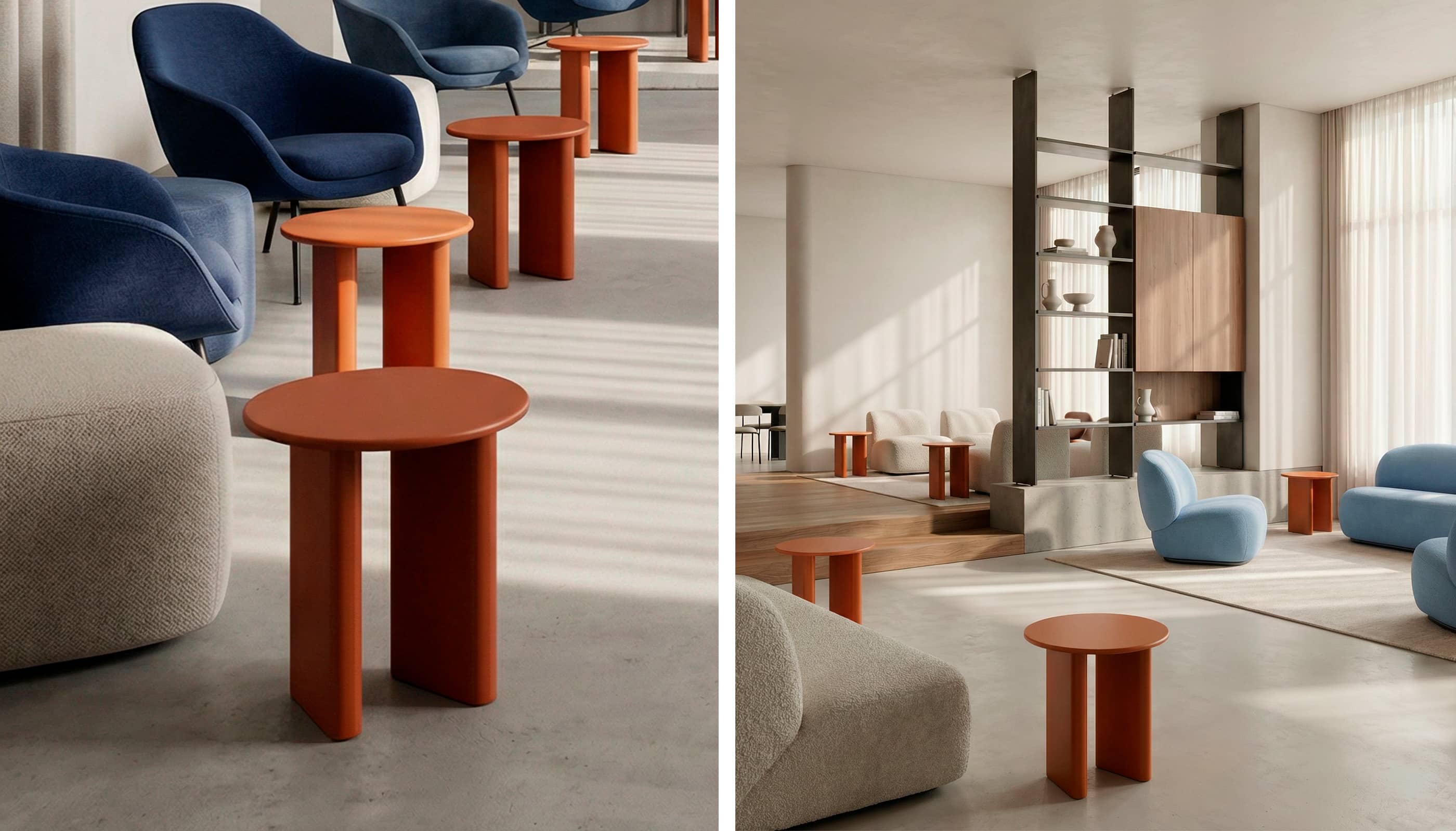 The collection offers versatility in finishes: in addition to travertine marble, the tables are available in lacquered MDF, allowing each piece to adapt to different styles and spaces, from sophisticated and formal environments to more contemporary and light interiors.