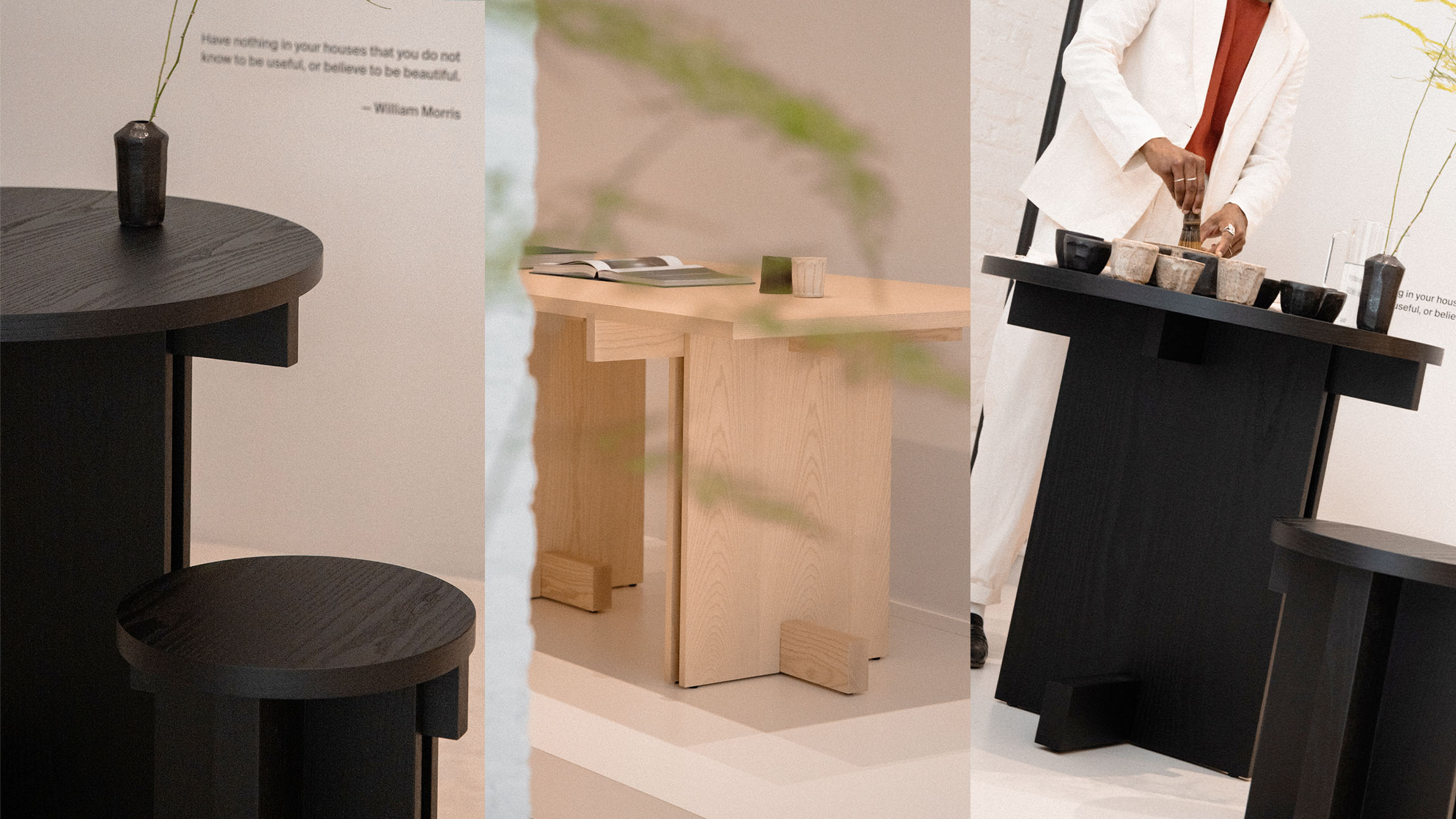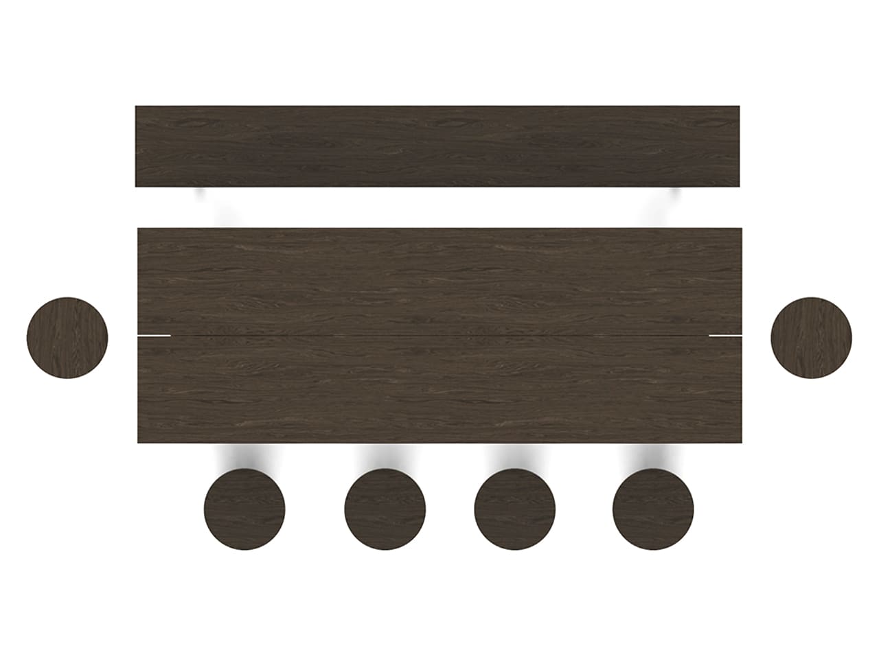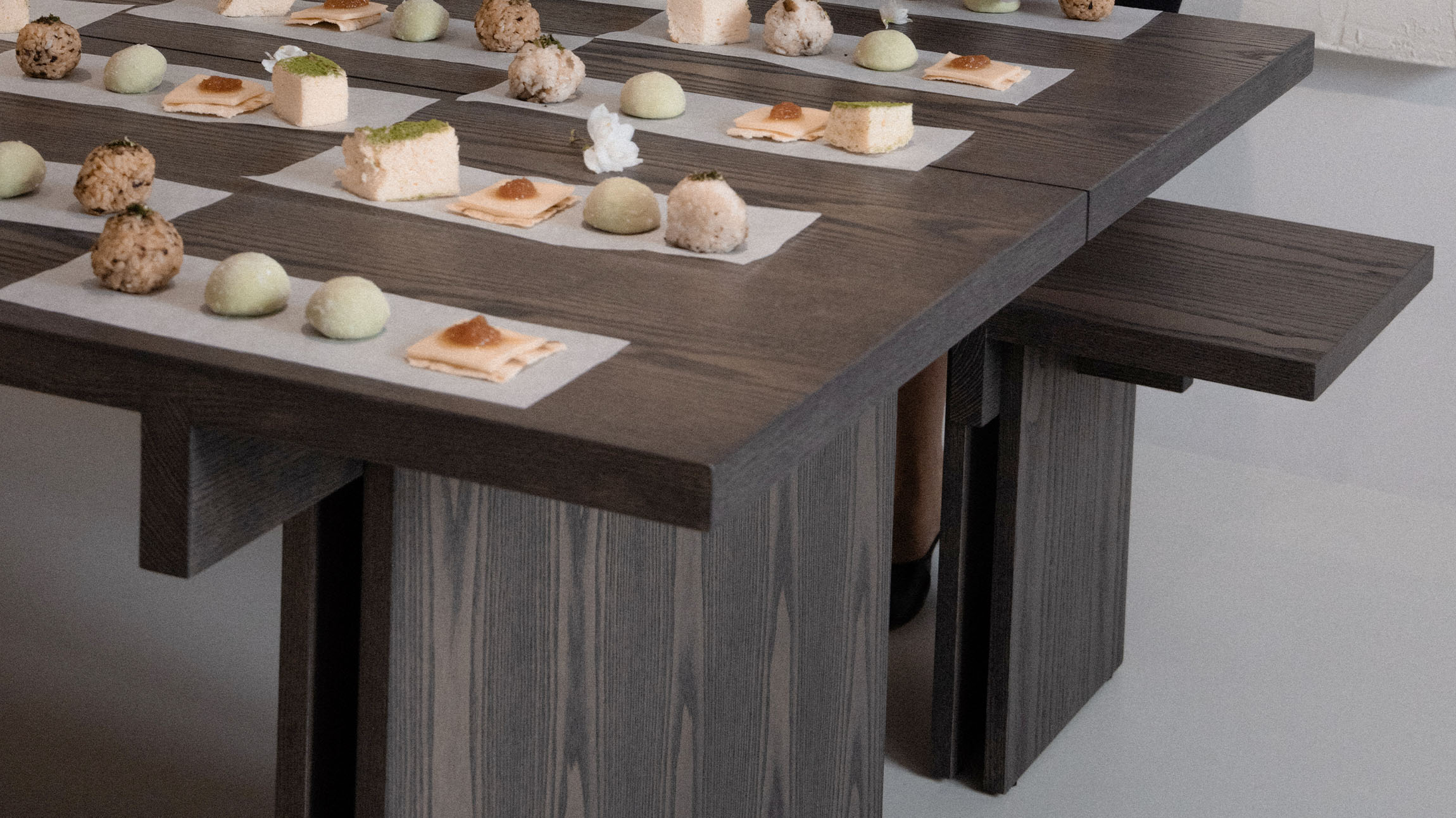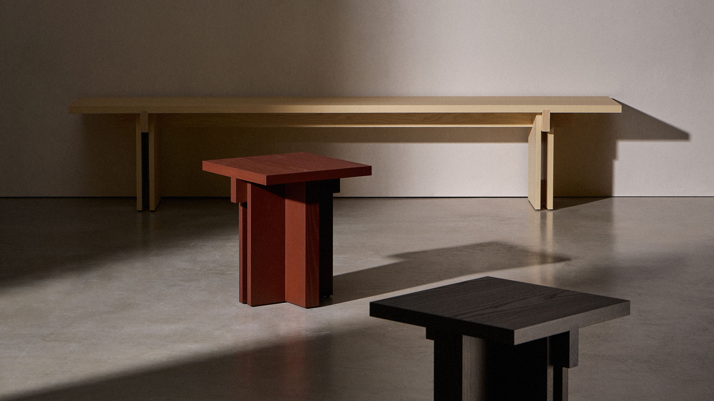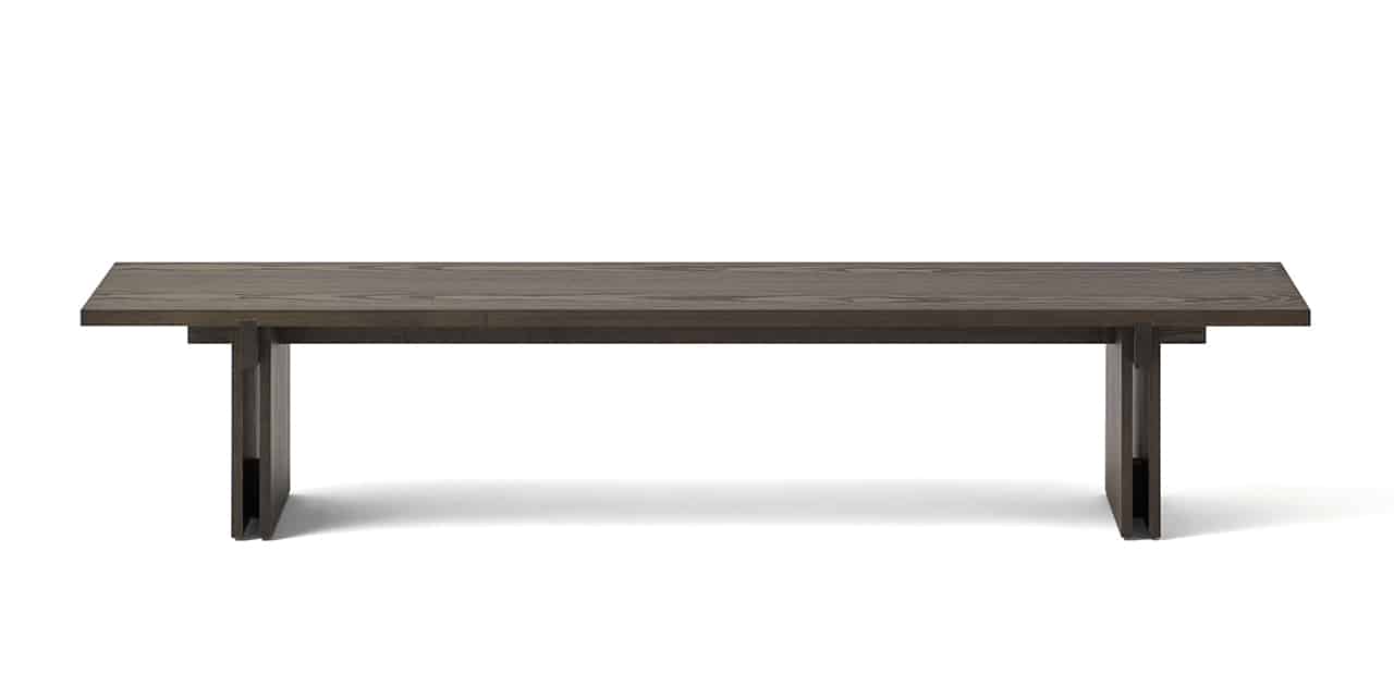 La mesa Rak establece el núcleo de la colección, acompañada junto a los bancos y taburetes forman un conjunto coherente. El resultado es un ambiente acogedor y sofisticado, donde cada pieza dialoga con las demás y se adapta tanto a espacios domésticos como contract.