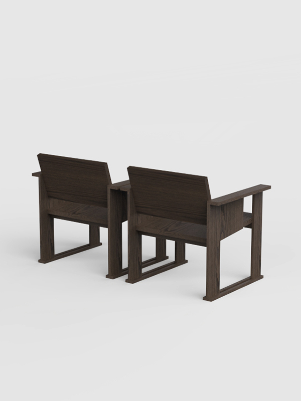 La estructura rectangular, formada por patas y reposabrazos en un mismo gesto, enmarca el respaldo y el asiento, creando una silueta arquitectónica precisa. Cada unión, ángulo y longitud se ha diseñado para ofrecer comodidad real en el uso diario, manteniendo al mismo tiempo un carácter elegante y atemporal.