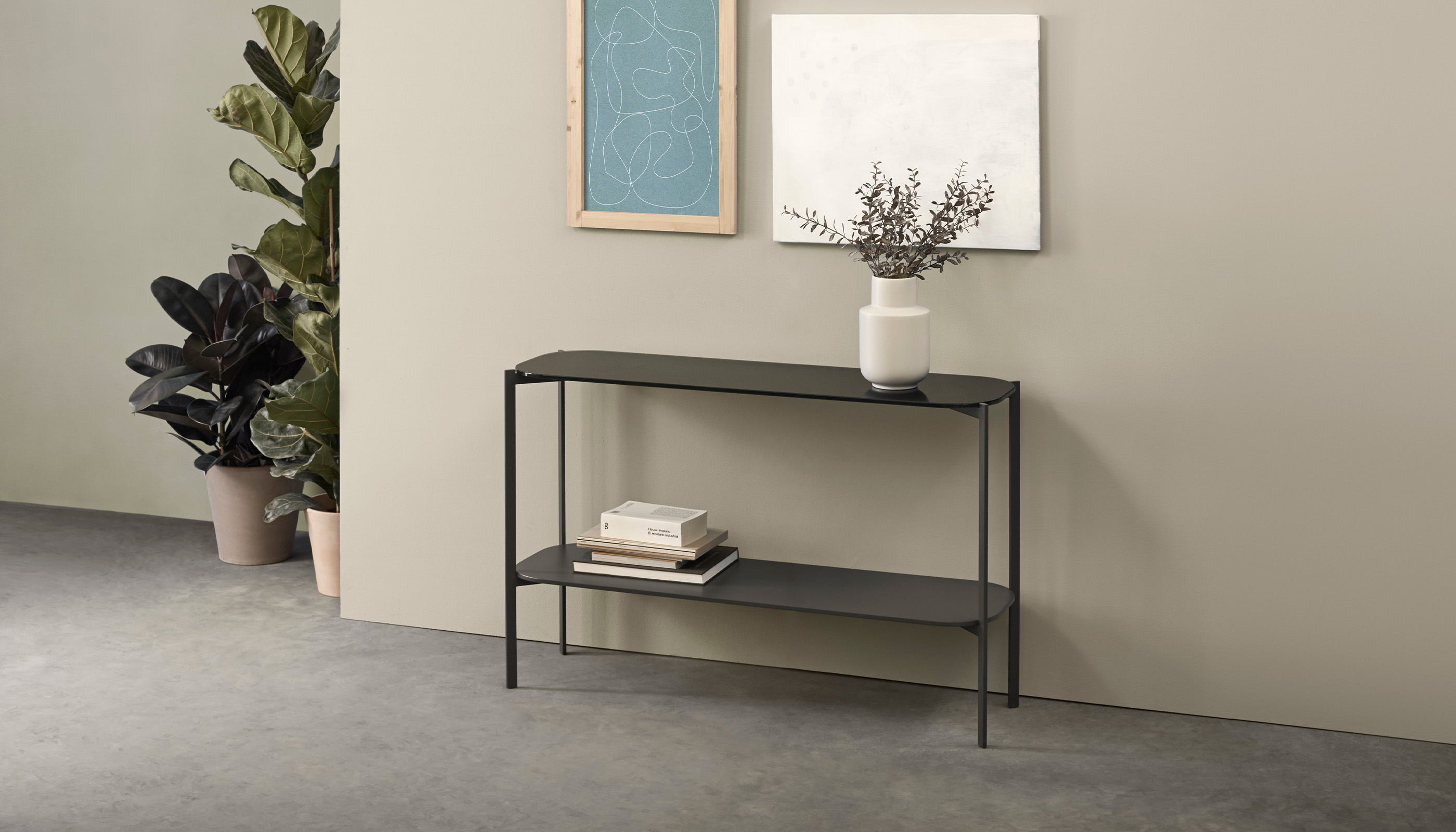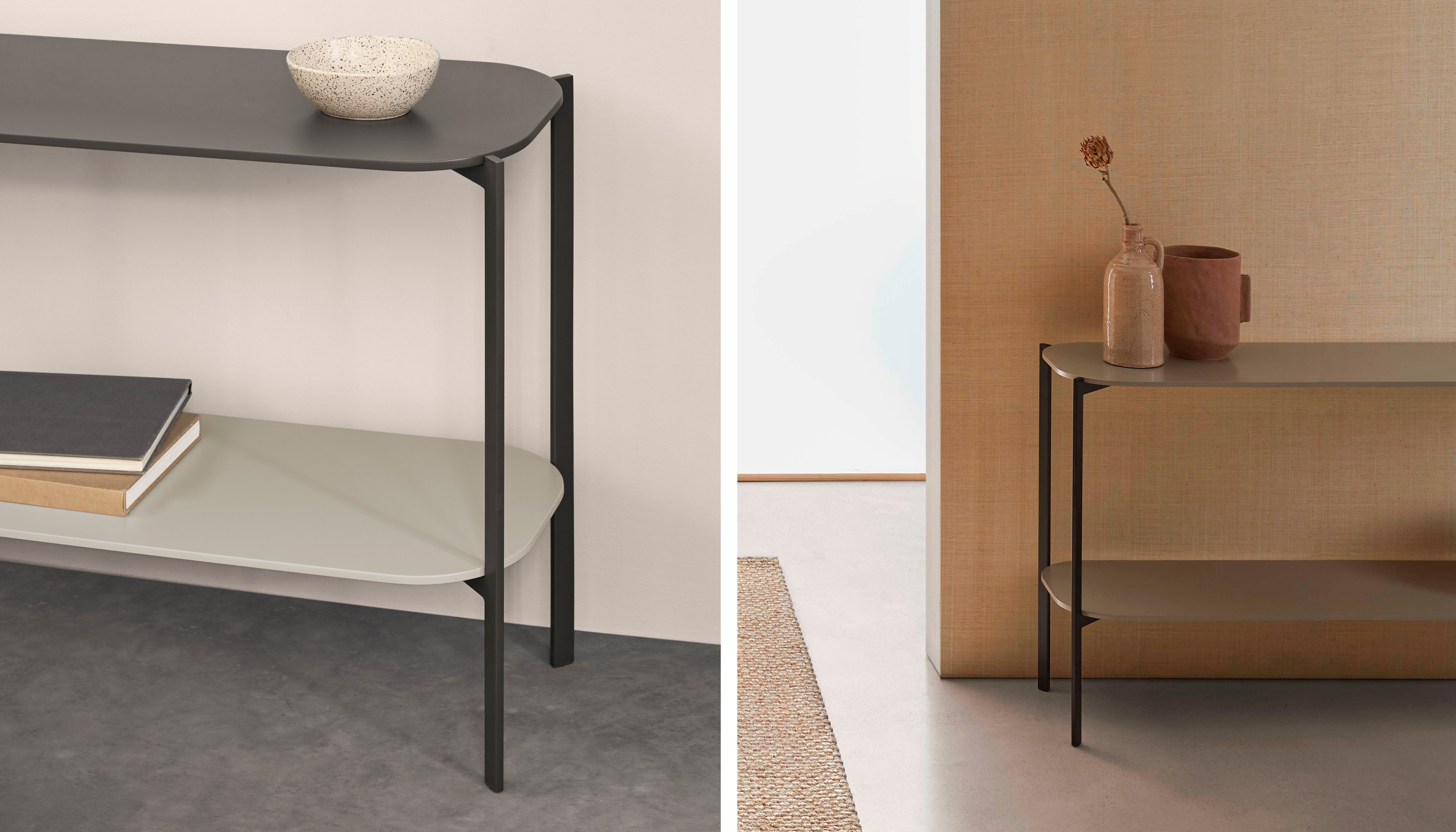 PerezOchandoLa consola Exo se define por una estructura metálica vista que se convierte en parte esencial de su diseño, aportando carácter y ligereza visual. La combinación equilibrada entre la estructura y los materiales de la tapa y el estante da lugar a una pieza elegante y singular, pensada para integrarse con naturalidad en interiores contemporáneos.