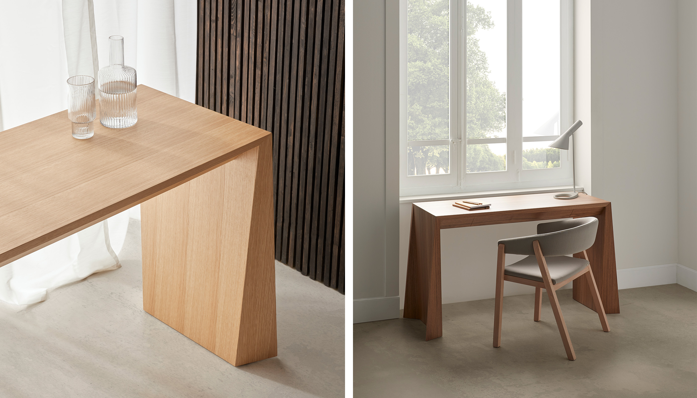 Vicente GallegaEl escritorio Naruk se define por una estudiada composición de ángulos y pliegues, que lo convierten en una pieza funcional y, al mismo tiempo, en un icono estético capaz de integrarse con naturalidad en distintos entornos. Su diseño depurado aporta ligereza visual sin renunciar a la solidez y presencia que caracterizan a la colección.