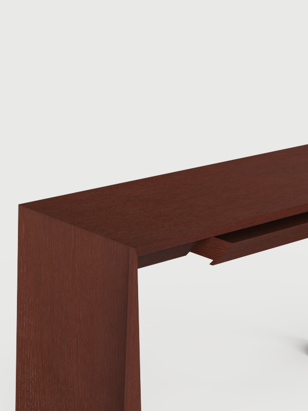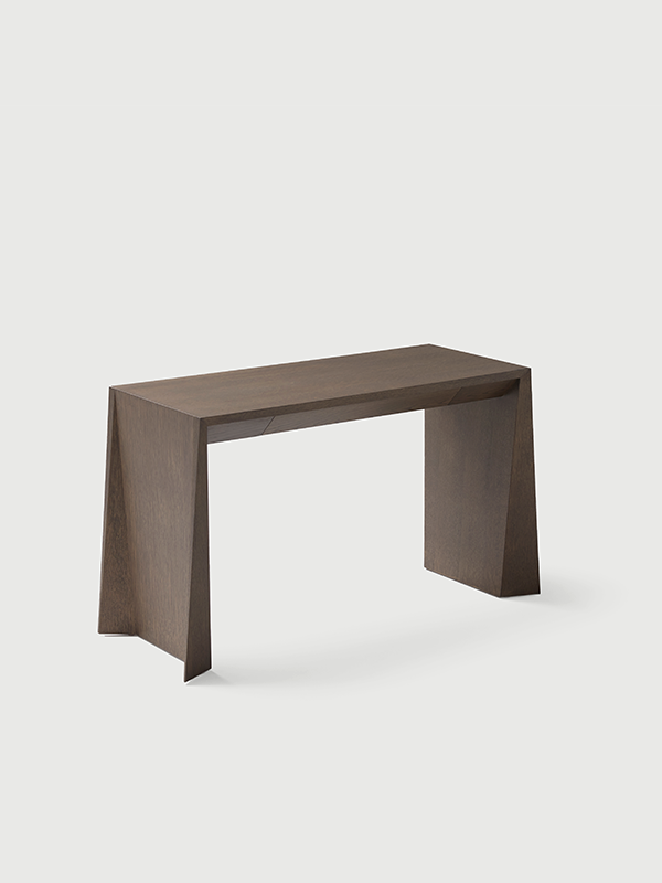 Fabricado en nogal, roble o laca, el escritorio Naruk aporta una calidez contemporánea que enriquece cualquier interior. Su versatilidad lo convierte en una elección idónea tanto para espacios residenciales como para hoteles, donde destaca por la personalidad de sus formas y la calidad de sus materiales.