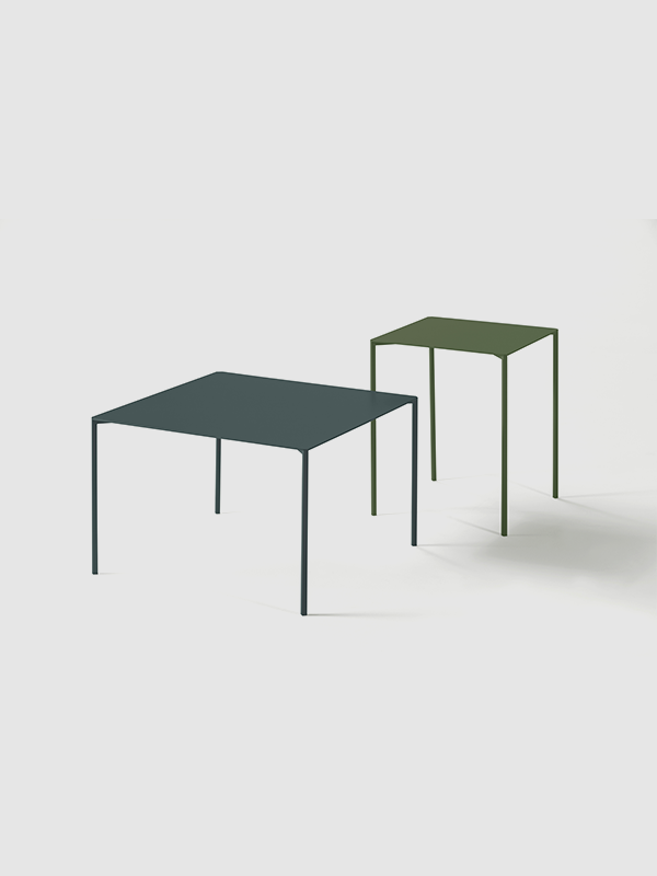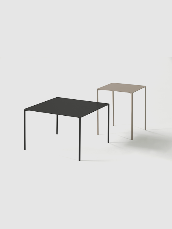 Fabricada en metal lacado o metal termolacado microtexturado en blanco o negro, la mesa Trazo está disponible en una amplia gama de colores, lo que la convierte en una solución altamente personalizable para interiorismo residencial, hotelero u офисinas. Una pieza versátil pensada para acompañar diferentes conceptos de proyecto.