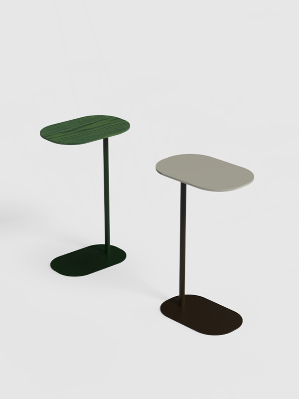 El diseño de la colección Une se articula alrededor de una fina columna que eleva el sobre, apoyada sobre una base amplia que garantiza estabilidad. Su peso ligero permite moverla con facilidad para acercarla a una butaca o sofá, ofreciendo una superficie práctica para apoyar objetos decorativos, un libro o incluso un ordenador portátil. Une funciona como un acompañante natural, adaptándose a las necesidades del día a día.
