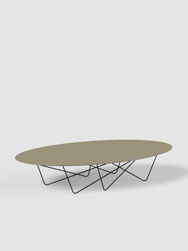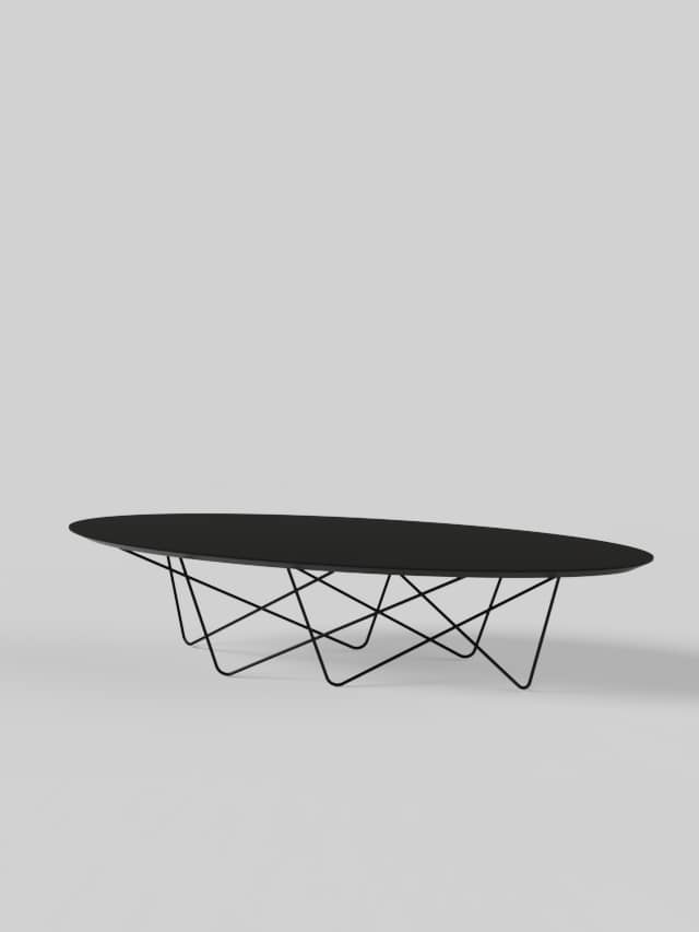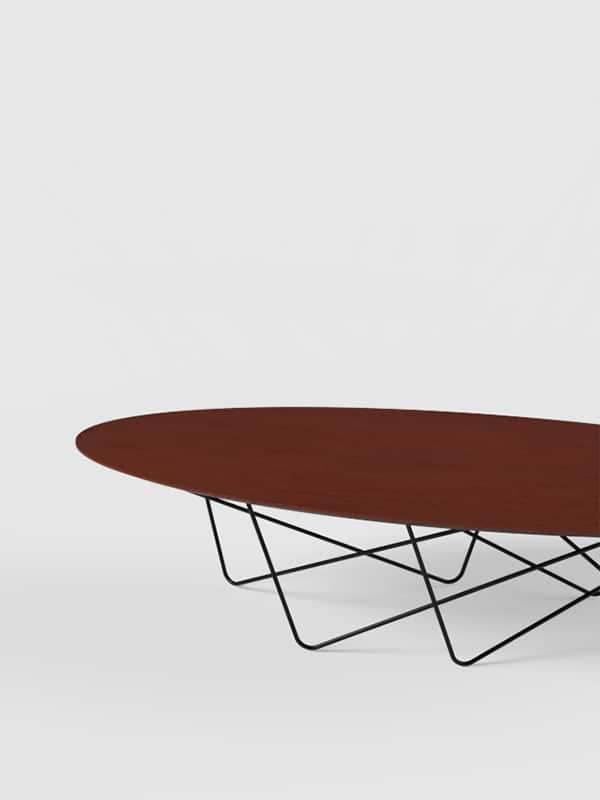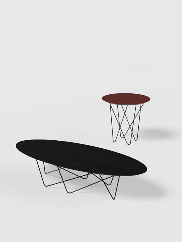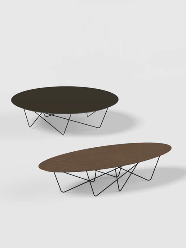 Discoh DesignYohsi es una colección de mesas de centro, compuesta por una tapa circular apoyada sobre un entramado de varillas metálicas curvadas que son la esencia de la pieza.